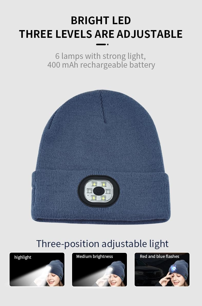 🚶♂️🌲 This waterproof, hands-free lighted hat is your go-to gear for dog walking, running, camping, biking, repairs, grilling, and more. Wherever you need light and music – it’s got you covered.